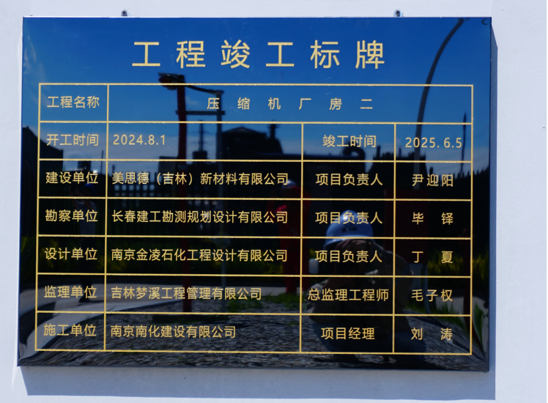 本次竣工驗(yàn)收由美思德(吉林)新材料有限公司組織,吉林市工程質(zhì)量監(jiān)督站驗(yàn)收科、設(shè)計(jì)單位、監(jiān)理單位、勘察單位、施工單位等及相關(guān)部門共同參與。驗(yàn)收組通過聽取匯報(bào)、查閱資料、實(shí)體檢查等方式,對(duì)項(xiàng)目施工質(zhì)量、功能實(shí)現(xiàn)等進(jìn)行了全面核查。經(jīng)綜合評(píng)定,各方一致認(rèn)為該項(xiàng)目符合國家相關(guān)標(biāo)準(zhǔn)及設(shè)計(jì)要求,工程質(zhì)量合格,同意通過竣工驗(yàn)收。