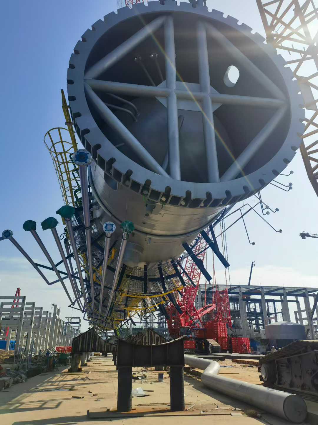 該項(xiàng)目位于福建省漳州市古雷石化基地,由公司第十六分公司組織實(shí)施,此次吸收塔的成功吊裝,為項(xiàng)目部提振了士氣,為后續(xù)施工的順利推進(jìn)起到了榜樣的作用。項(xiàng)目部會(huì)以此次吊裝作為一個(gè)小目標(biāo),盯緊時(shí)間節(jié)點(diǎn),科學(xué)施工,為實(shí)現(xiàn)項(xiàng)目整體實(shí)施的大目標(biāo)而繼續(xù)努力奮斗。