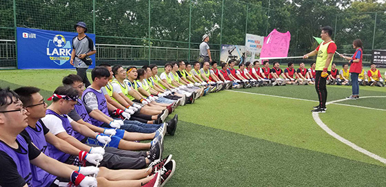 為了使新員工們互相認識,形成熱烈的團隊氛圍,為后續(xù)活動打好基礎(chǔ)。教練引導(dǎo)全體新員工分組,小組成員自我介紹,建立聯(lián)系。每組成員共同商議隊名并說明含義,構(gòu)思LOGO和亮相動作。